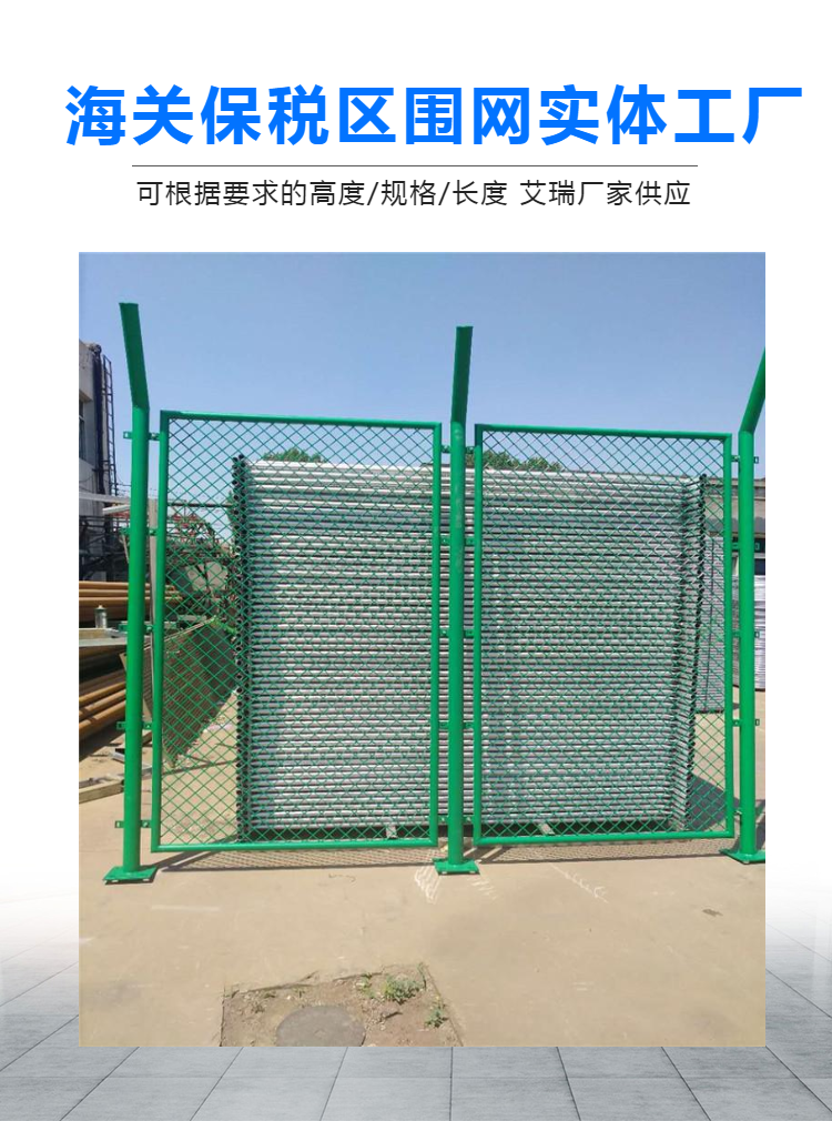 綜合保稅區圍網是海關實施特殊監管的經濟區域,在保稅區的外圍一般都安裝可以透視的圍網,也稱為保稅區圍網,保稅區倉儲圍網,海關圍網,綜合保稅區圍網,保稅港區防護網,露天倉儲區圍網等多個不同的叫法。保稅區圍網按照國家的設計標準高度2.2米x1.5米,表面通透,防腐使用年限15年,綜合保稅區圍網和保稅區圍網的生產工藝比普通圍欄或者圍網的制作工藝級別要高。