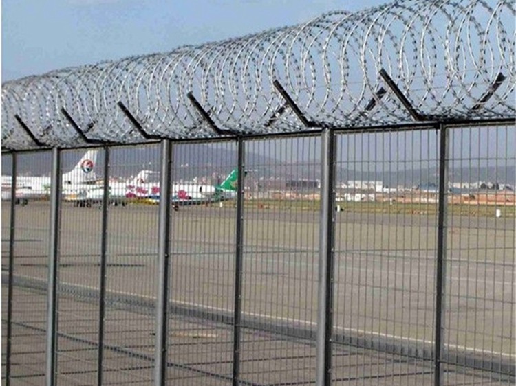 機場防御圍界網不僅是一種簡單的防護網和隔離網,它還可以設置在公路、橋梁等多個地方,能夠起到維護交通秩序,防止交通意外的發生和美化城市樣貌的功能。在機場護欄網頂部安裝刀片刺籠,很好的增加了安全防護性能,由V形支柱、焊接網和緊固件組成,不易變形。