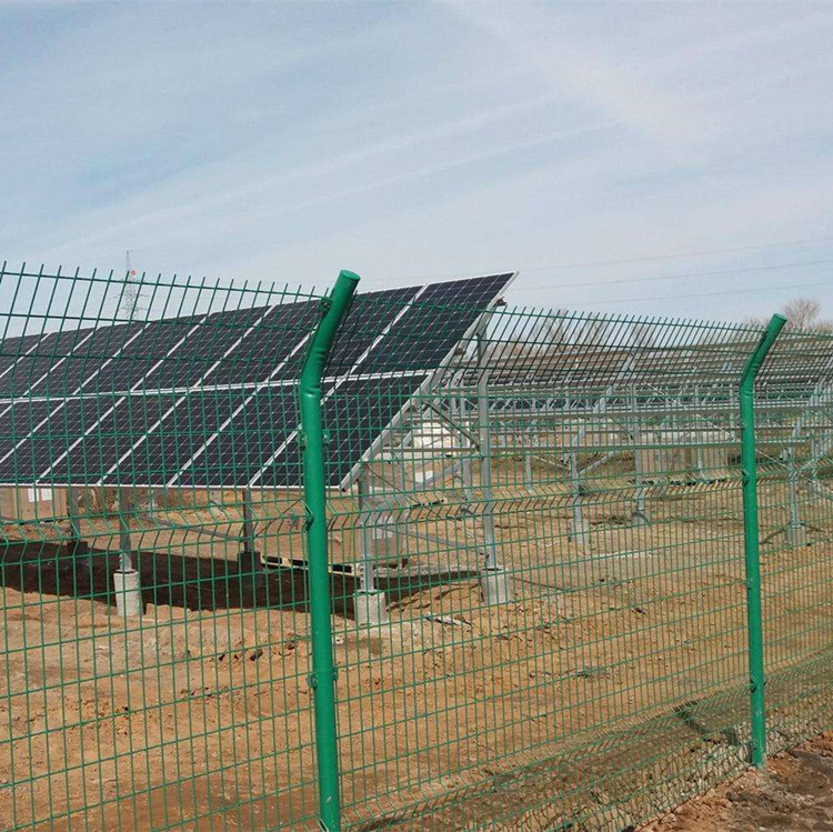 光伏電站隔離網是專門為光伏太陽能發電站設計研發的一種圍欄網,這種光伏電站隔離網適應能力強,無論是在石頭山坡、土山坡、草原、丘陵、沙漠等建設光伏發電站都可以使用這種專用的光伏電站隔離網,雙邊絲隔離網和框架隔離網都可以選擇使用在光伏電站隔離網,而且安裝使用起來特別方便,為各個光伏電站供應最多最常見光伏電站隔離網的規格為高度1800mm-2000mm,寬度2500mm-3000mm,光伏電站隔離網網眼75*150mm、90*170mm,光伏電站隔離網立柱Φ48mm×2100mm預埋300mm;光伏電站隔離網顏色有草綠色、藍白色搭配等我艾瑞公司也可以根據您的需求或者圖紙要求來定做。我廠專門做光伏電站隔離網,有想了解具體規格信息的可來電免費咨詢報價。