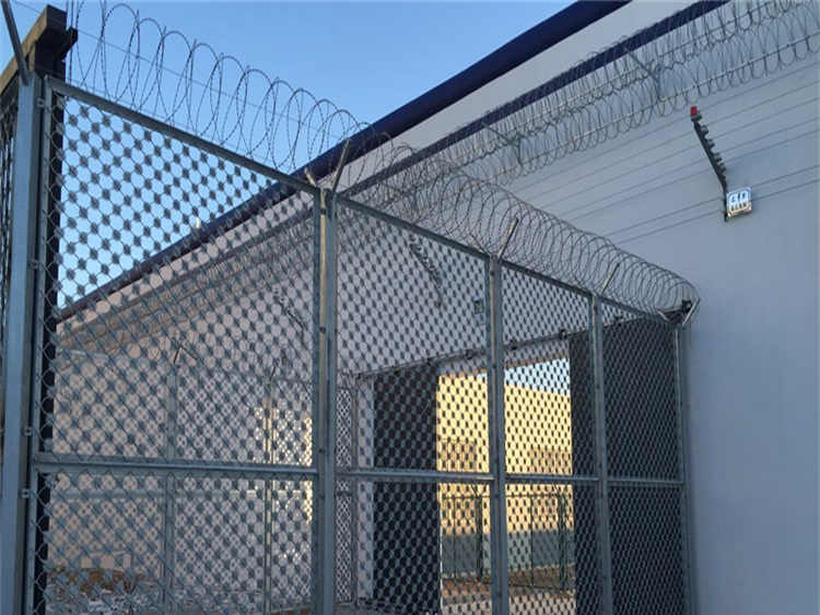 如果在監獄護欄網頂部加裝刀片刺絲、刀片刺繩后又很好的增強了安全防護性能, 近年來,被廣泛應用在監獄,軍事基地等高安全場所。