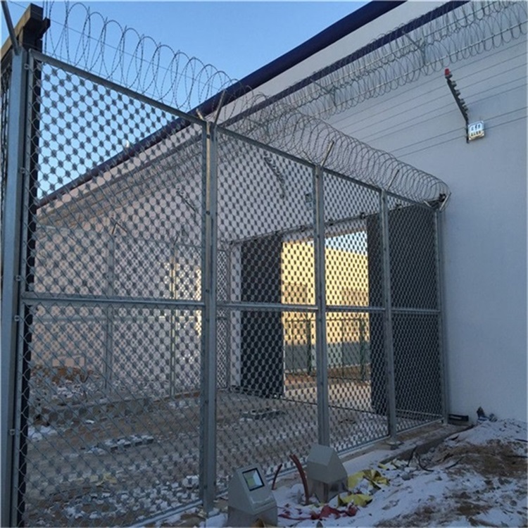 護欄網:監獄梅花刺片護欄網的主體是由高強度鋼絲制成的護欄網,網孔大小適中,能夠防止人員通過,同時又能保證視線的通誘性。護欄網的高度一般為2米以上,能夠有效地阻擋人員攀爬。
