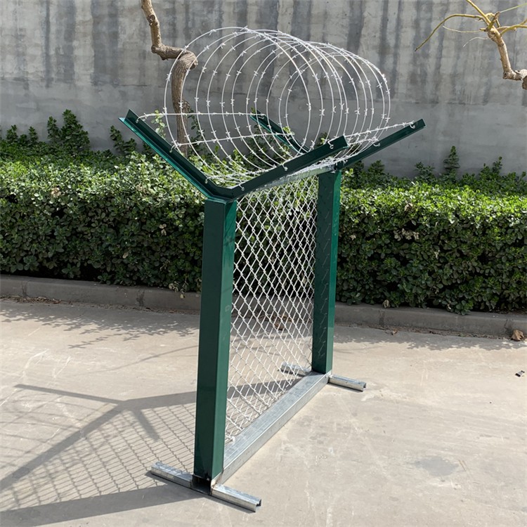 機場飛行區隔離網根據制作特點可分兩種。一種為電焊網片護欄,即機場鋼筋網圍界,另一種是勾花網護欄,即鋁包鋼圍界網這兩種護欄網都在防護方面有著 的應用。電焊網片護欄是經電焊網片機對鐵絲,冷鍍鋅鐵絲或熱鍍鋅鐵絲焊接后,再經折彎。噴塑或PVC等多道工席加工制作而成。具有外形美觀,并能有效起到防護等特點。勾花網護欄是經勾花網機對各種材質的金屬絲,其中包含PVC絲,冷熱鍍鋅絲等。勾編而成。具有抗沖擊能力強,美觀,防護性好等特點。對于普通的機場飛行區隔離柵、飛機場圍墻鐵絲網、Y型柱護欄網、邊境線金屬隔離網可以采用電鍍、熱鍍、噴塑、浸塑等防腐形式,具有很好的防老化、耐曬、耐候等特點。其產品造型美觀、花色多樣,既起到圍欄作用,又起到美化作用。我廠可以根據用戶需要定作各種規格尺寸的機場護欄網產品!