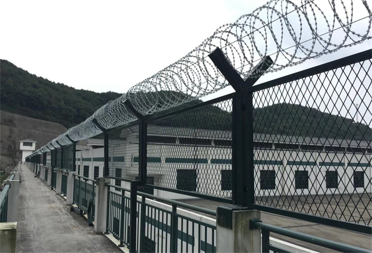 獄墻金屬隔離網邊框網結構具有更好的美觀性。監獄作為一個特殊的場所,需要保持一定的秩序和規范。邊框網結構相對于其他形式的隔離網,具有更簡潔、大方的外觀,能夠更好地與監獄建筑相融合,使得整個監獄的外觀更加美觀和統一。監獄金屬隔離網采用邊框網形式的原因主要是為了提供更高的安全性、更好的視野和通風效果、更方便的安裝和維護以及更好的美觀性。這種結構能夠滿足監獄的特殊需求,保證監獄的安全和正常運行。