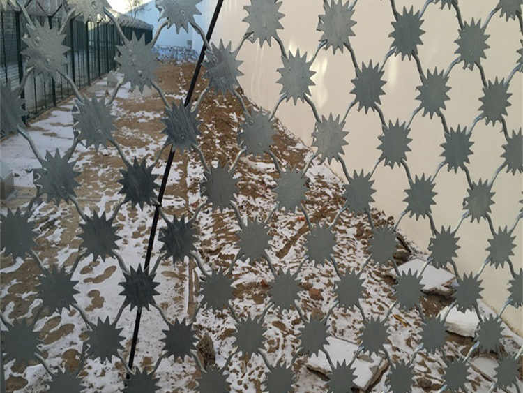 監獄密紋防護隔離網采用了高純度的鋼材,鋼材中硫、磷的含量不超過0.035%。立柱:使用優質雙面鍍鋅全鋼材質,有效地保證防攀爬金屬鋼網墻系統的堅固安全。防腐形式有電鍍、熱鍍。平板式刀片刺網是刀片刺網的一種新的應用方式,它是將單圈式刀片刺網平壓成板狀,或將兩件單圈刺網壓平后交叉相錯使用,外表美觀而且實用,可與直線式刀片刺網搭配使用,構成下直線上平板的防護墻,或僅用平板式刺網構成防護墻。