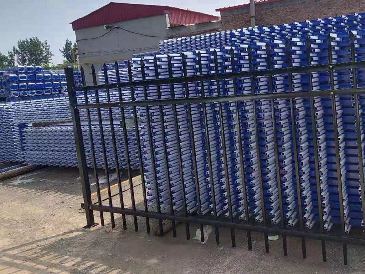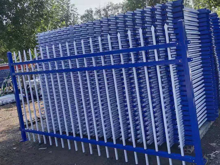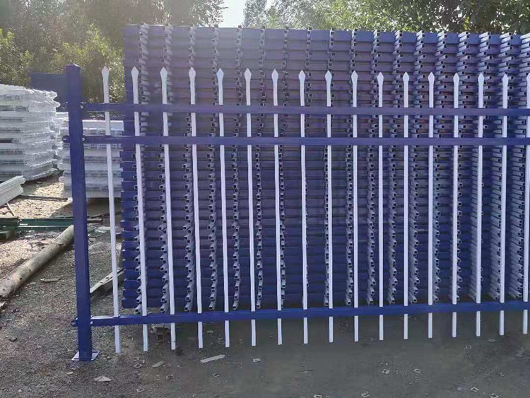 藍白圍墻方管組裝護欄水洗除去鐵藝工件表面的酸水及其它附著物、上助鍍劑再次清洗工件表面,保證表面在鍍鋅之前不在生銹。烘干進步鐵藝工件溫度,避免鐵藝表面水分過多,在鍍鋅時發作爆炸。熱浸鋅工件浸泡于440℃-470℃熔融的鋅液中,抵達一定時間后提出,鐵藝工件表面被獲得一層鋅鐵合金層和純鋅層鍍層。