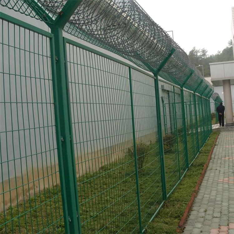 監獄鋼網墻施工預埋式:一般是30-40公分,立柱一般要比網片長,并且挖的坑深度要夠,最好在里面放個磚或者其他硬點的東西,預防左右傾斜。