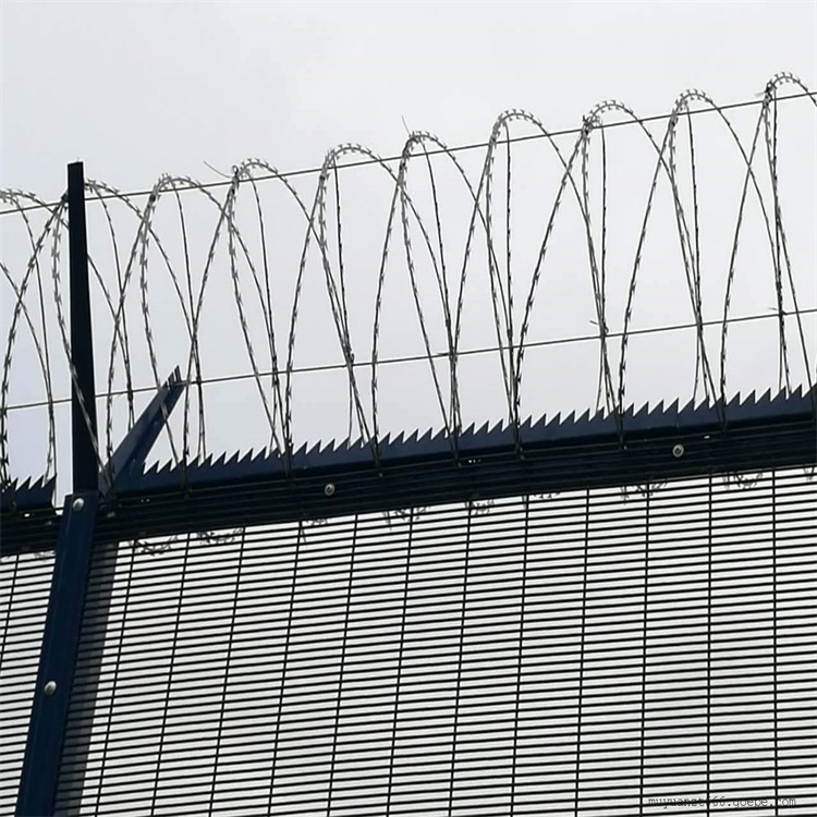 監獄鋼網墻有兩種安裝形式:焊接刀片刺網鋼網墻和鐵絲焊接鋼網墻。監獄鋼網墻由焊接鋼網加蛇腹形刀刺網組合而成。產品具有結構新穎.堅固緊密 網面平整.網孔均勻、刀鋒銳利、防攀爬等特點。建設于監獄的內外墻地面及高墻之上,網墻內側或頂部加裝蛇腹形刀刺網,形成一道高不可攀、難以逾越的隔離障礙。配合高壓打擊電網、各種監 控報警設備確保監獄安全萬無一失。