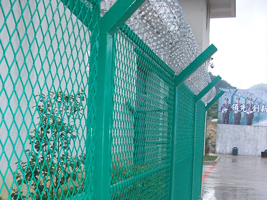 看守所焊接鋼網墻的安裝位置是建于看守所監區的內外墻地面及高墻之上,網墻內側或頂部加裝蛇腹形刀刺網產品,具有結構新穎、堅固緊密、網面平整、網孔均勻、刀鋒銳利、防攀爬、耐腐蝕性強等特點,形成一道高不可攀、難以逾越的隔離障礙。配合高壓打擊電網各種監控報警設備確??词厮O區安全萬無一失。