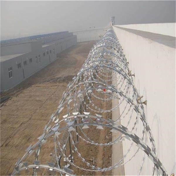 刀片刺絲又名刮刀型刺絲,是一種近年發展起來的防護、隔離能力較強的新型防護網產品。它來用鋼板沖壓成型包附于鋼絲(筋絲)之上由銳利尖角鍍鋅鋼板或不銹鋼薄板做刀片,高張力鋼絲做芯線組合而成的。鋒利的刀型刺由雙線扣裝后成蛇腹狀 ,既美觀又讓人不寒而栗。起到了很好的阻嚇作用。該產品具有美觀。防阻效果好、施工便利等優點。世界各國己格刀片刺網廣泛用于軍事重地、監獄、政府、銀行,以及生活小區圍墻。私人住宅、別墅的圍墻、門窗,高速公路、鐵路護欄以及邊境線等用來防護保安。