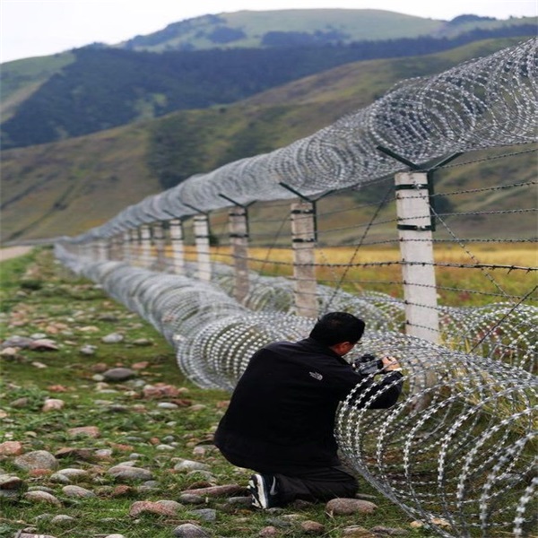 邊界線國界線的封閉與防護可采用移動阻隔鐵絲網或架設固定鐵絲網兩種方式。邊境鐵絲網是防止人越界的防控設施,一般的國界采用天然地形來區分,比如,河流山脈壕溝等,在不易區分的地方樹立界碑。只有在特殊的地帶才采用邊防鐵絲網。在中朝邊境,朝鮮軍民常到我方來入境,所以有一些地段采用防控邊防鐵鐵絲網設施。中蒙邊境是大草原為防止牲口越界部分地段采用防護阻隔網便于管理。