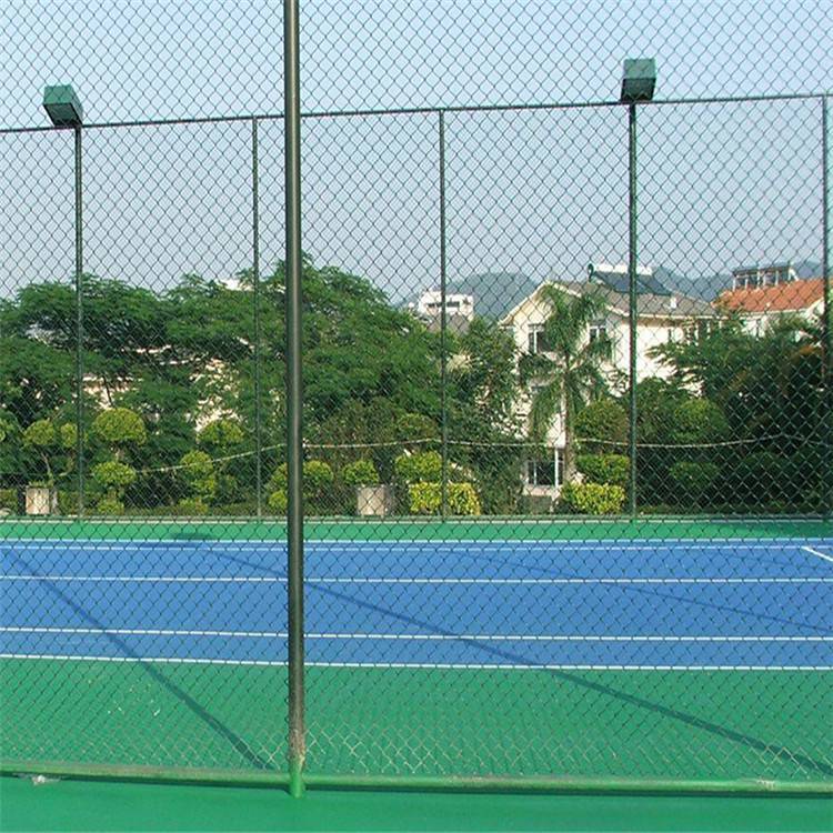 籃球場圍網材質:優質PE包塑絲 籃球場圍網生產工藝:編織焊接 籃球場圍網表面處理:圍網采用PE/PVC包塑絲,立柱、邊框采用噴塑.浸塑處理,籃球場圍網規格:1.包塑絲經:3.8mm