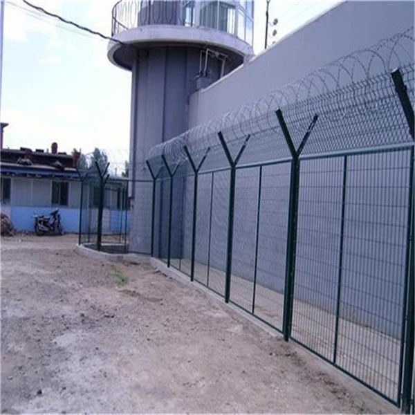 監獄警戒區隔離網墻設計要求整體連員一致,框網方正,對角線誤差不大于2cm。隔離網網頁安裝離地距離5-8cm,框網與立柱采用螺栓固定邊耳式連接網頁每邊與立柱連接點不少于六處。警成線隔離網墻立柱采用水泥澆灌預埋式,規格為600大600+600mm(長*寬*深,底座四角預制四個直徑25mm熱鍍鋅螺栓(每個螺栓中心為距基礎兩邊150mm的交叉點),從頂端往下絲長不小于150mm( 與地籠焊為-體),螺栓高于底座平面50mm(底座平面應與所在位置最終地面高度在同一水平高度),螺栓間距為300mm*300mm,與立柱法蘭盤螺孔相適應。立柱保持豎直、不歪斜。立柱做調直處理,每20米校正,每100米偏差角度不大于5°,安裝整體無歪斜,隔離網整體呈直線(除地形需要做出適宜角度外)刀片滾網、拉絲卡扣,均采用不銹鋼材質。刀刺網安裝固定卡扣整體調正,使刀刺網不出現擰轉情況,刀刺刺圈分布均勻,每隔30-40cm與拉絲固定;分段連接處需將兩端刀刺網做連接固定,刀刺網固定點需緊鎖不得出現松動、脫落現象;刀刺網安裝與隔離網平行,上下左右均成直線延伸,轉角處需做加密加固處理。