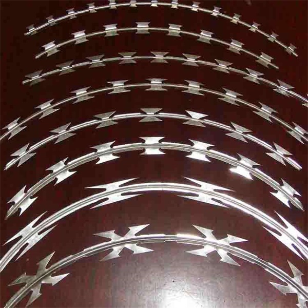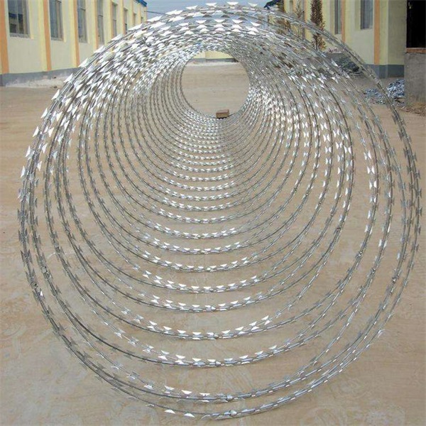 刀片刺網(wǎng)分為BTO與CBT兩種,BTO包括 BTO-10 BTO-18 BTO-22 BTO-28 BTO-30: CBT包括 CBT-60 CBT-65 BTO-22為國內的常用型號(其它型號也可以訂做)刀片刺繩的特點:刀片刺繩又名刮刀型刺絲,是一種發(fā)展起來的防護、隔離能力較強的新型防護網(wǎng)產(chǎn)品。鋒利的刀型刺由雙線扣裝后成蛇腹狀,既美觀又讓人不寒而栗。起到了很好的阻嚇作用。同時該產(chǎn)品具有美觀、防阻效果好、施工便利等優(yōu)點。刀片刺網(wǎng)又名刀片刺繩是一種發(fā)展起來的防護、隔離能力較強的新型防護產(chǎn)品。