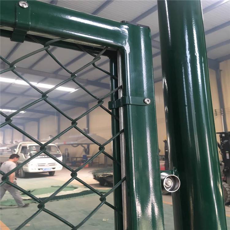 籃球場圍網—般是采用勾花網網片制作的一種用于籃球場周邊起隔離防護作用的圍欄。籃球場圍欄一般高度在4-5米,立柱間隔2.5-3米;立柱一般采用60-75mm的鋼管,鋼管壁厚不小于1.5mm,經浸塑出處理。籃球場圍欄一般采用勾花網制作網片,對勾花網的要求如下:絲徑一般在4-5毫米之間的包塑鋼絲,網孔一般為50*50mm。因為勾花網具有一定的伸縮性,所以彈性好,當球員或者球沖撞到圍欄上時不宜受到傷害,網面受外力不會變形扭曲。