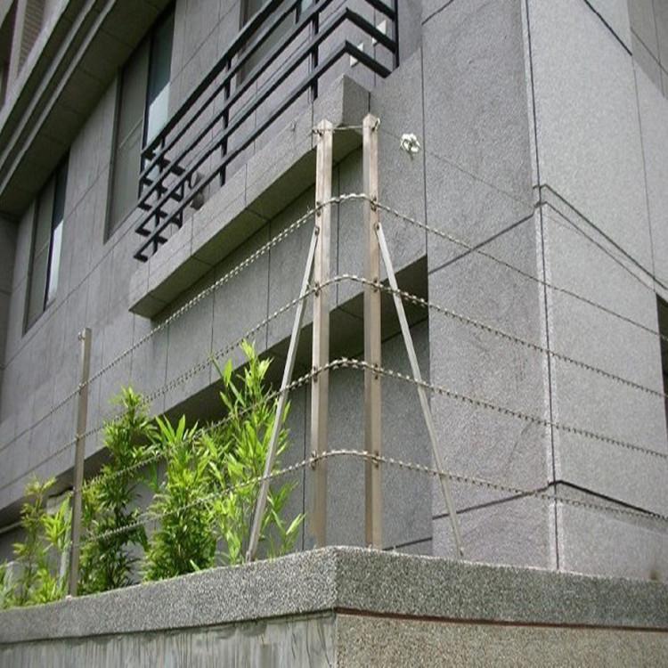 3、直線型刀片刺網表面處理:表面處理的方式有兩種高亮銀粉磁漆處理和噴塑處理(也叫PVC處理)銀粉磁漆處理的優點不影響刀片的鋒利,看起來刀片閃閃發亮恐嚇性好,讓人望而生畏!適用于監獄軍事地等,噴塑處理的優點更耐腐蝕,使用壽命更長,顏色豐富,更美觀實用適用于園林公寓機場等表面處理后按客戶要求打上包裝,就可以發貨了!
