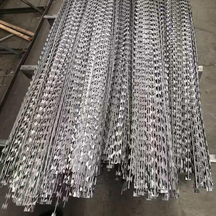 1、制作刀片:選用優質Q195L熱鍍鋅帶鋼(或者不銹鋼帶鋼),根據客戶選定的花型,經高速沖床,沖軋成鋒利的刀片刺條,把刀片刺條纏成圓餅狀