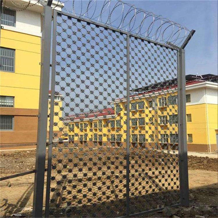 監獄防沖撞鋼網墻又稱作“Y型安全防御護網”,是由V型支架立柱,加強型焊接片網,安全防盜連接件和熱鍍鋅刀片刺籠組成,強度和安全防御性級別很高。近年來,被廣泛應用在監獄,軍事基地等高安全場所。