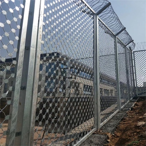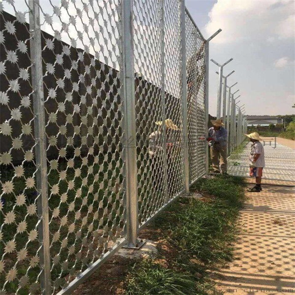 梅花刺隔離網(wǎng)一般用于監(jiān)獄大門,探監(jiān)門,人員通道兩邊的隔離網(wǎng)