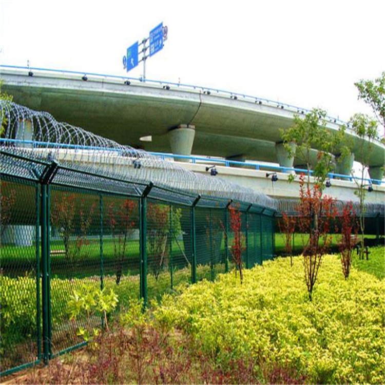 機場是一個對安全性要求高的場所,所以對于機場圍界網而言就是牢固的外墻。機場圍界網又稱作Y型安全防御護網,是由折彎網片 V型支架立柱加強型焊接片網,上面有刀片刺繩安全防盜連接件組成強度和安全防御性級別高。被廣泛應用在機場,基地等安全場所。
