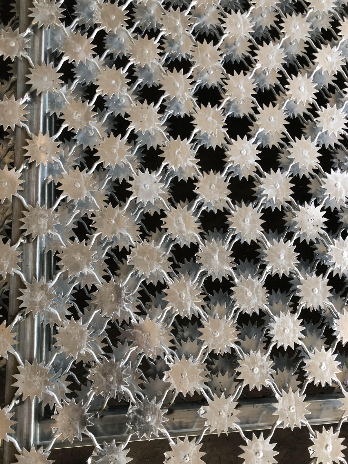 監(jiān)獄太陽花護欄網(wǎng)又被稱為監(jiān)獄梅花刺護欄,它的立柱由Y形鍍鋅鋼管制成,鋼管的壁厚為150*150*8mm,網(wǎng)架的尺寸為100*100mm。刺14個,邊框可用角鋼或方管。此外,監(jiān)防太陽花護欄網(wǎng)的Y形還配備了不銹鋼刀片刺網(wǎng),并對其表面進行了噴涂。常見的是深綠色噴涂和銀灰色噴涂,看起來高端,簡單而美麗,并且可以起到防腐防銹的作用,還可以起到裝飾環(huán)境的作用。