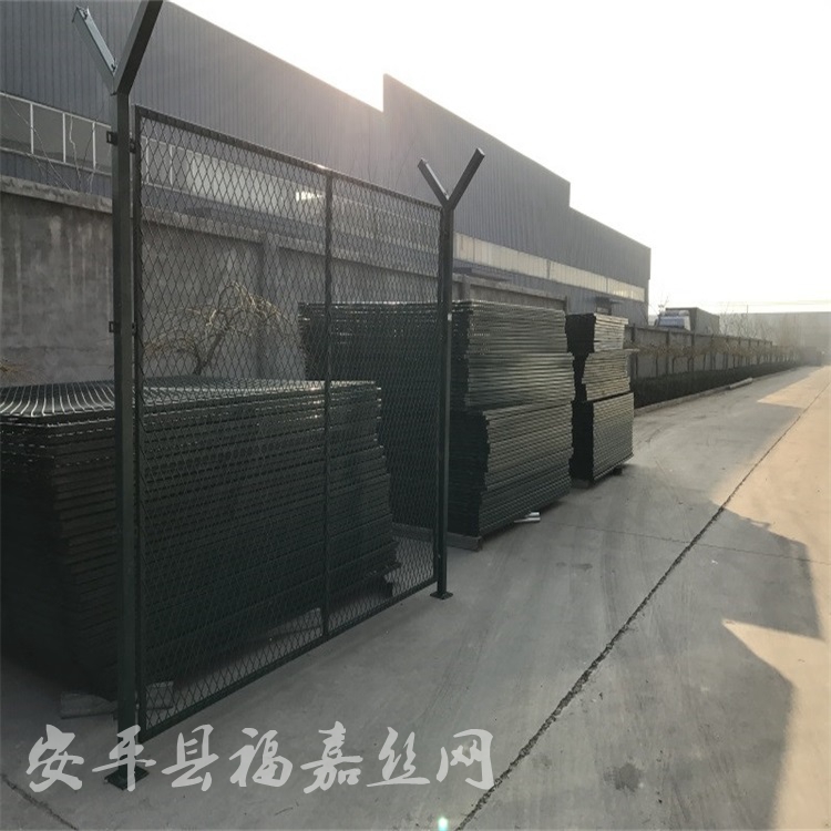 監獄防攀爬圍欄網設計要求整體連貫一致,框網方正,對角線誤差不大于2cm。隔離網網頁安裝離地距離5-8cm,框網與立柱采用螺栓固定邊耳式連接網頁每邊與立柱連接點不少于六處。