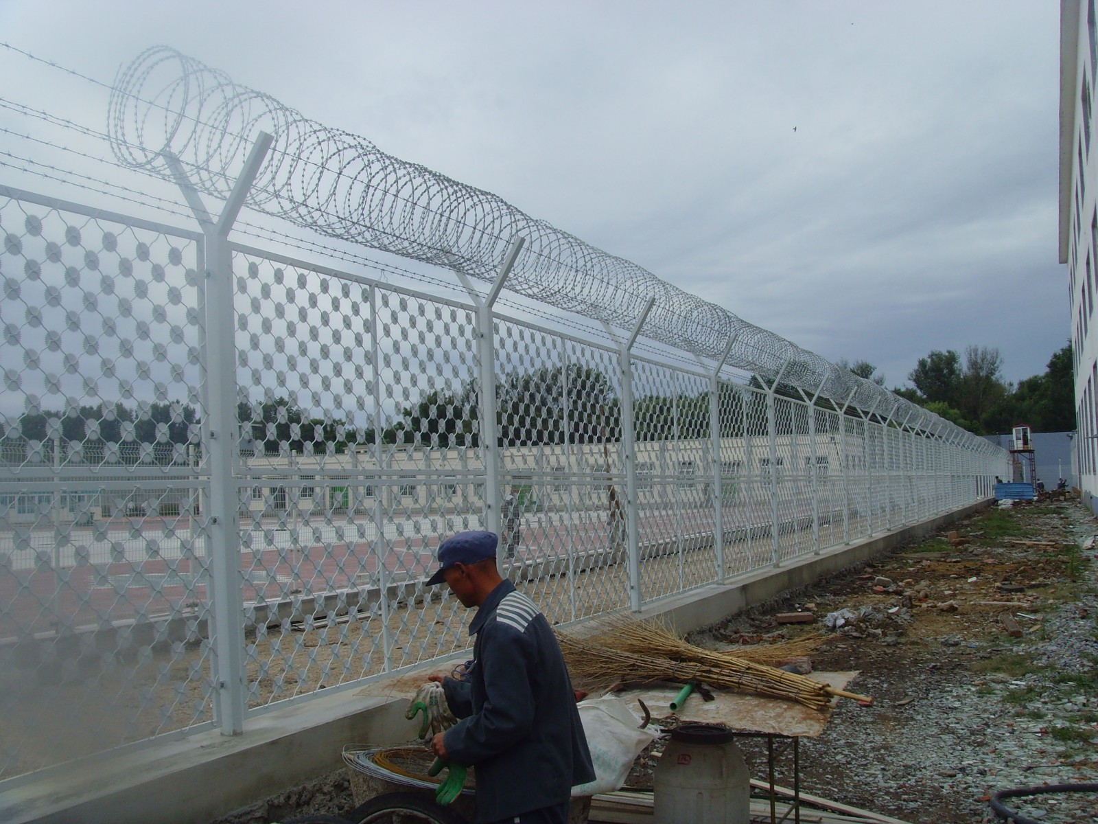 監獄圍墻梅花刺片隔離網立柱由Y形鍍鋅鋼管制成鋼管150*150*8mm網架的尺度為60*60*2.5m,監獄圍墻梅花刺片隔離網的尺度為2500*3000mm,4000*3000mm此外,監獄圍墻梅花刺片隔離網的Y形立柱還裝備了不銹鋼刀片刺網。常見的是深綠色噴涂和銀灰色噴涂,看起來高端,簡單而美麗,并目能夠起到防腐防銹的效果.還能夠起到裝飾環境的效果。